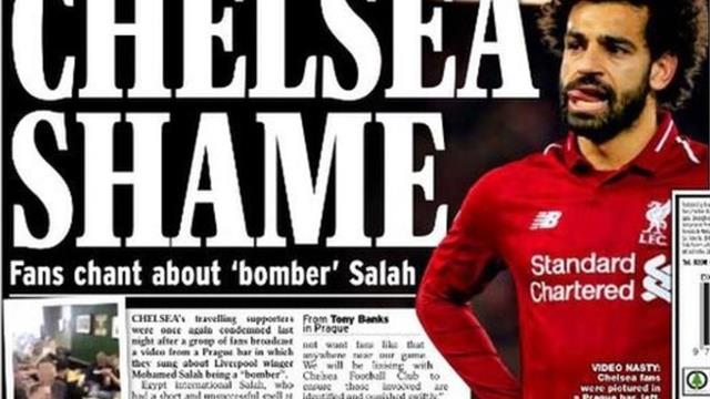 تصدرت العنصرية التي تعرض لها النجم المصري "محمد صلاح" جناح ليفربول الإنجليزي، اغلفة الصحف البريطانية الصادرة، اليوم الجمعة.