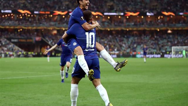 سجل البلجيكي إيدين هازارد، الهدف الثالث لفريقه تشيلسي في شباك آرسنال، خلال المواجهة الجارية بين الفريقين بنهائي الدوري الأوروبي.