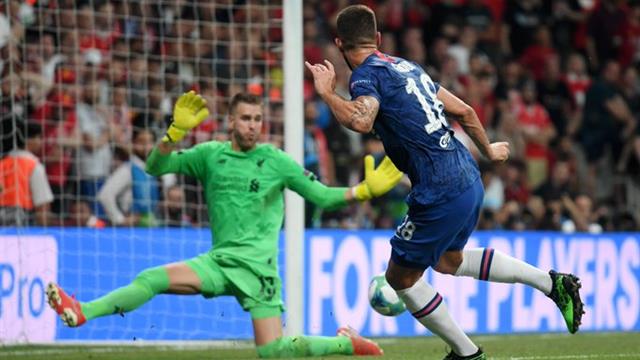 سجل ماسون ماونت هدفًا ثانيًا لفريق تشيلسي الإنجليزي في نهائي السوبر الأوروبي بشباك ليفربول."+ toatrr + ">