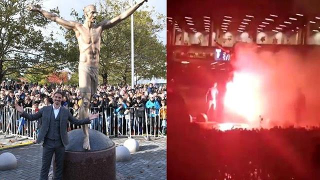 وأضرمت الجماهير النيران في تمثال إبراهيموفيتش الذي أزال عنه اللاعب الستار في بداية شهر أكتوبر الماضي وقاموا بتشويهه، ووصفوه بالخائن لأنه لم يفهم ما يعنيه ذلك لناديه السابق مالمو.