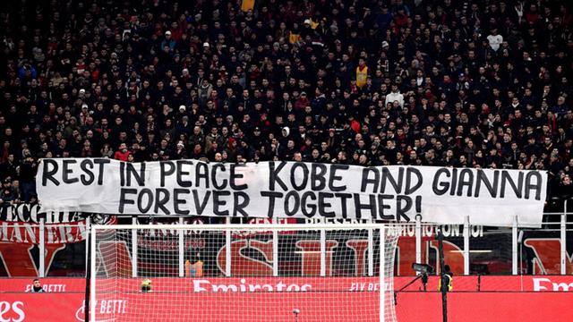 ونشرت جماهير ميلان لافتة لـ كوبي براينت: "أرقد في سلام كوبي وجيانا (ابنته)، إلى الأبد معًا".