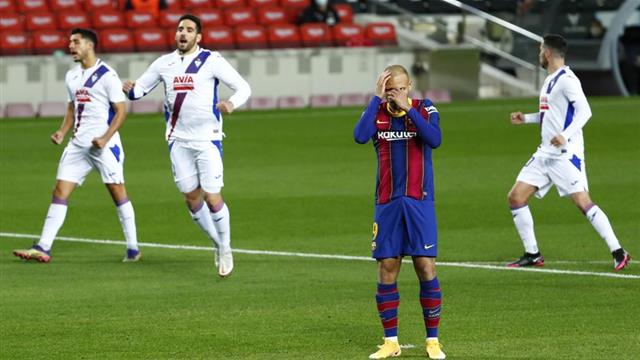 أهدر الدولي الدنماركي مارتن برايثوايت مهاجم برشلونة ركلة جزاء في مباراة فريقه أمام إيبار، ضمن الجولة 16 من الدوري الإسباني.