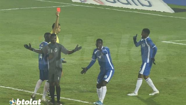 نال حارس سونيديب بطل النيجر كارلوس دجرام، بطاقة حمراء (طرد)، خلال مباراته أمام الأهلي المقامة حالياً على ملعب الأهلي وي السلام.