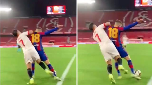 برشلونة يثير الجدل عبر تويتر بشأن ركلة جزاء ألبا غير المحتسبة أمام إشبيلية
