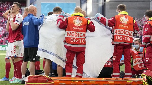 وسقط إريكسن بشكل مروع على أرض الملعب في الدقيقة 42، دون أي تدخل من أحد.