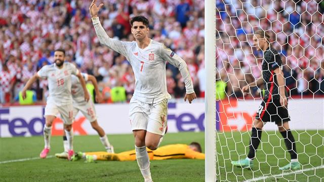 تقدم منتخب إسبانيا بهدفين في ثلاث دقائق فقط، في مباراته المثيرة الجارية حاليًا أمام منتخب كرواتيا، في بطولة كأس أمم أوروبا.