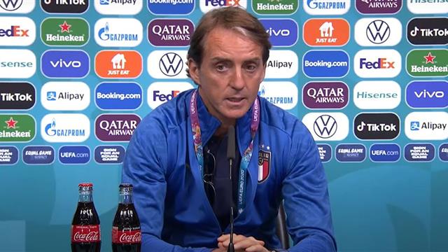 وقال مانشيني في مؤتمر صحفي نشرته شبكة "فوتبول إيطاليا" عشية المباراة: "ستكون مباراة صعبة، إسبانيا مختلفة عن بلجيكا، لكننا سنواجه العديد من الصعوبات، عانينا ضد النمسا بسبب عدوانيتهم، ولأنها كانت المباراة الأولى في الأدوار الإقصائية".