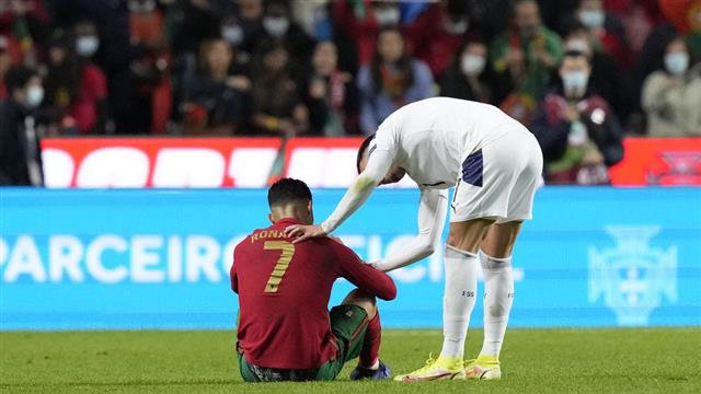 جلس البرتغالي على الأرض بخيبة أمل كبيرة وفي النهاية، ألقى جانبًا شارة القيادة، مما جعل لاعب المنتخب الصربي نيمانيا رادونيتش يواسيه.