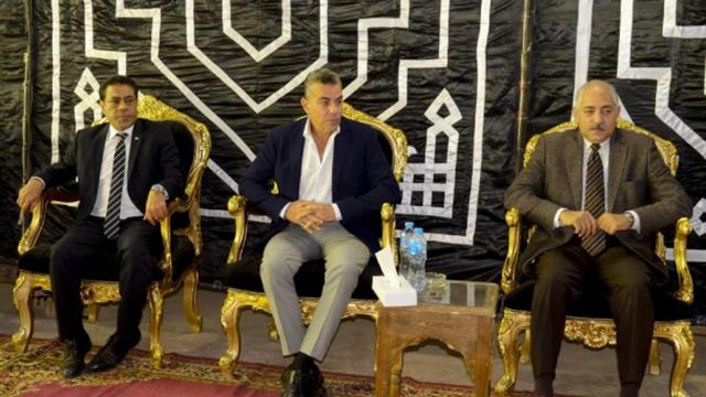 صور | مرتضى منصور يستقبل وفد الأهلي في عزاء جلال إبراهيم