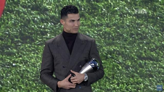 رونالدو فاجئ الجميع وتواجد في الحفل، الذي أقيم في مدينة زيورخ السويسرية، ومنحه رئيس فيفا، جياني إنفانتينو جائزة خاصة.