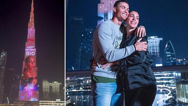 كريستيانو نشر فيديو عبر حسابه الرسمي بموقع التواصل الاجتماعي "إنستجرام" حيث أضاء برج خليفة بصورة جورجينا وكتب البرتغالي: "عيد ميلاد سعيد لـ حبيبتي".