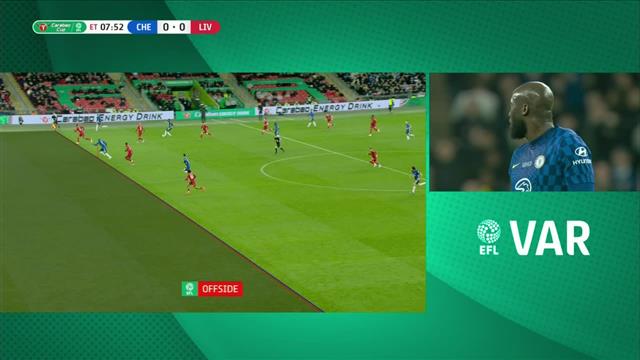 تدخلت تقنية الفار وتسببت في إلغاء هدف البلجيكي روميلو لوكاكو في مباراة ليفربول وتشيلسي بنهائي كأس كاراباو.