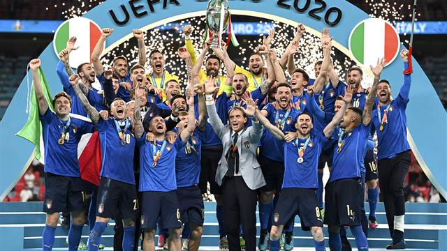 وفاز ببطولة يورو 2020 الأخيرة، المنتخب الإيطالي على حساب إنجلترا في النهائي بركلات الترجيح، الذي أقيم على ملعب ويمبلي في العاصمة الإنجليزية لندن.