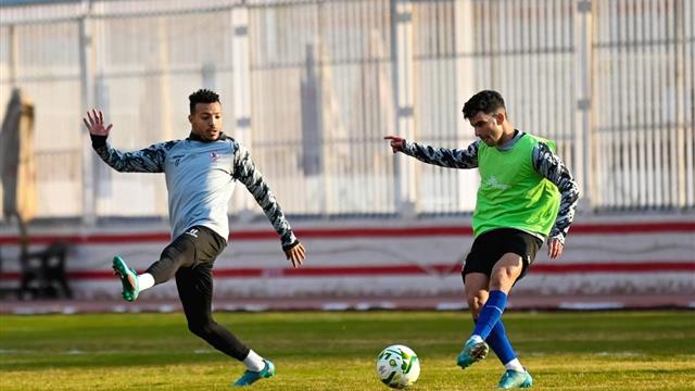 وقسم الجهاز الفني للزمالك اللاعبين إلى مجموعتين خلال المران.