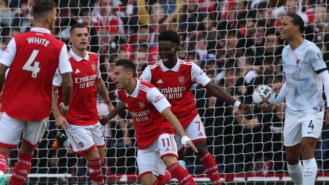 هدف آرسنال جاء بعد تمريرة من بوكايو ساكا إلى مارتن أوديجارد الذي مرر الكرة بطريقة رائعة إلى مارتينيلي ليسجل هدف الجانرز الأول في مرمى حارس ليفربول، أليسون بيكر.