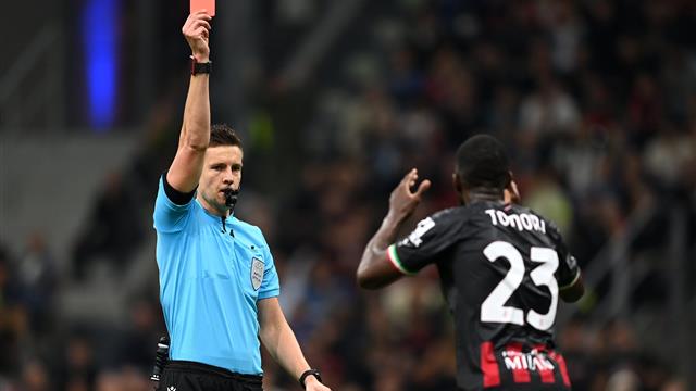 انطلق ماسون ماونت، وسقط أمام مرمى ميلان، ليقرر الألماني دانييل سبيرت احتساب ركلة جزاء له، ولكنه لم يكتف بذلك، وأشهر البطاقة الحمراء في وجه الإنجليزي توموري.