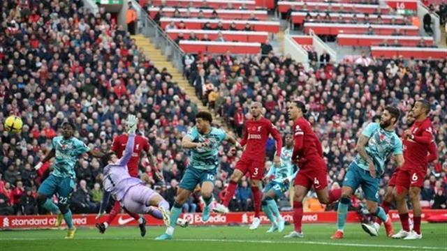 ليفربول سجل الهدف الأول عن طريق النجم البرازيلي بعد عرضية رائعة من روبرتسون من مخالفة بعيدة عن المرمى، حوّلها بوبي بمؤخرة رأسه إلى مرمى الضيوف، في الزاوية الصعبة.