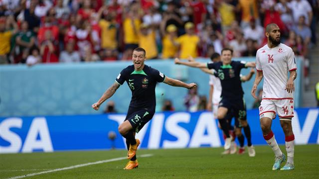 سجل منتخب أستراليا الهدف الأول في مرمى تونس، خلال المباراة الجارية بينهما الآن ضمن منافسات بطولة كأس العالم 2022.