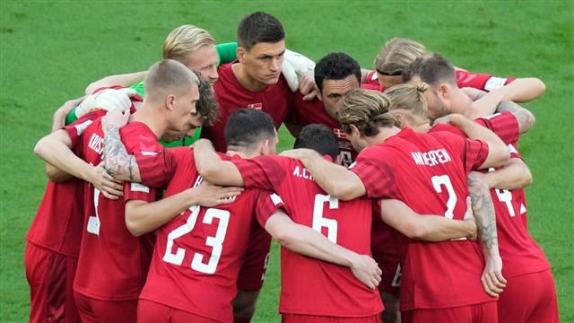 ويشارك نجم مانشستر يونايتد، كريستيان إريكسن في وسط ملعب المنتخب الدنماركي، بالإضافة لقيادة مارتن برايثويت الهجوم.