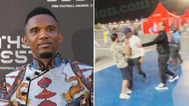 مهاجم الكاميرون السابق- الذي يشغل الآن منصب رئيس جمعية كرة القدم في بلاده- تم تصويره في مواجهة مع مشجع جزائري يدعى مأموني، خارج ملعب 974 في الدوحة بعد فوز البرازيل 4-1، ويبدو أنه يضرب المشجع في الوجه.