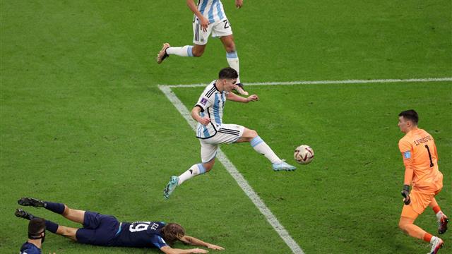 وجاء الهدف بعد هجمة مرتدة سريعة قادها ألفاريز، وراوغ مدافعي كرواتيا، وعندما حاولوا تشتيت الكرة من أمامه، استمرت مع ألفاريز، ليسجل الهدف الثاني بالدقيقة 39 بطريقة رائعة.