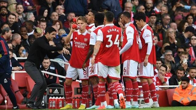 خط الوسط الهجومي: بوكايو ساكا، مارتن أوديجارد، جابرييل مارتينيلي.