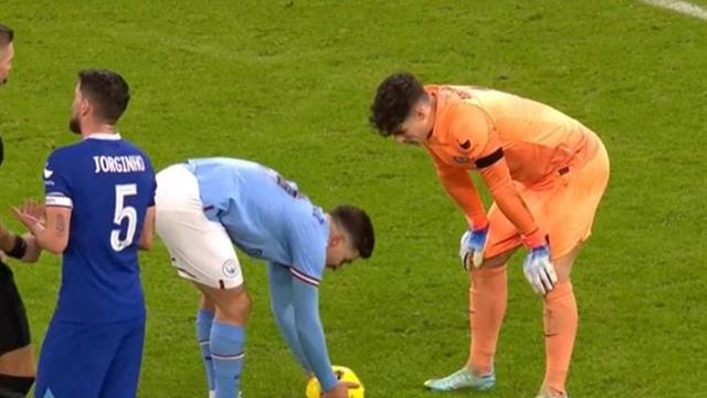 وسجل جوليان ألفاريز الهدف الثاني للسكاي بلو من ركلة جزاء، وشوهد وهو يتحدث مع كيبا قبل تنفيذها.