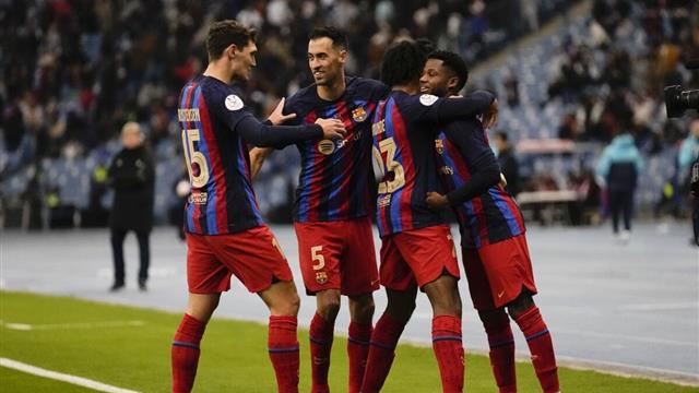 أعلن تشافي هيرنانديز، تشكيل برشلونة الرسمي، الذي سيخوض لقاء اليوم ضد ريال مدريد، في ذهاب نصف نهائي كأس ملك إسبانيا 2022-2023، والتي ستنطلق في العاشرة مساء بتوقيت القاهرة.