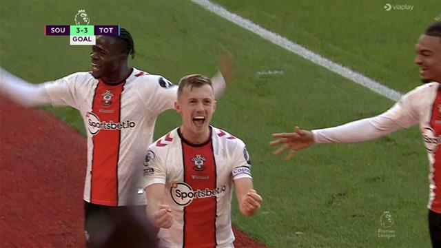 وكادت المباراة أن تنتهي بفوز توتنهام بثلاثة أهداف مقابل هدفين، قبل حصول ساوثهامبتون على ركلة جزاء، نفذها جيمس وارد براوس بنجاح في الدقيقة 93.