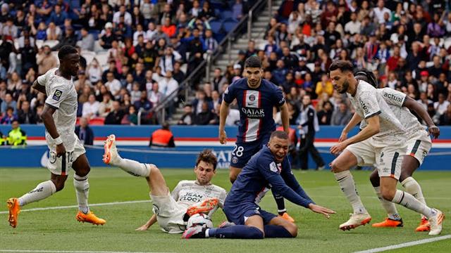 ولعب ليونيل ميسي وكيليان مبابي في هجوم باريس سان جيرمان، وتقدم لوريان بهدف أول في الدقيقة 15 عن طريق إنزو لو في.