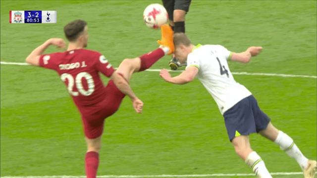 وتدخل جوتا بقدمه في وجه سكيب، وتحصل على بطاقة صفراء وسط اعتراضات من لاعبي توتنهام ومدربهم ماسون، مطالبين بطرد البرتغالي.
