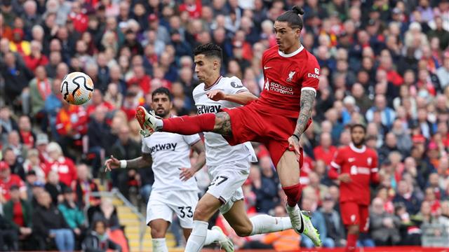 سجل داروين نوينز، مهاجم ليفربول، هدف فريقه الثاني أمام وست هام، في اللقاء المقام حاليًا على ملعب أنفيلد، ضمن لقاءات الجولة السادسة من الدوري الإنجليزي.