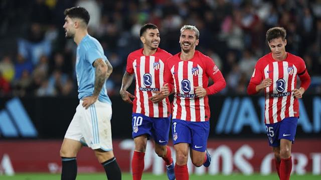 جريزمان يستغل طرد حارس سيلتا فيجو ويقود أتلتيكو مدريد بهاتريك لوصافة الدوري الإسباني