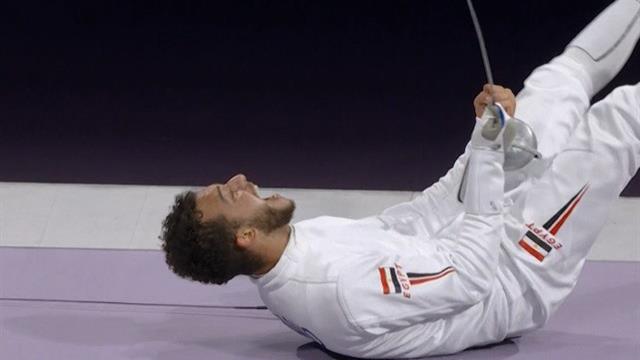 لحظة فوز محمد السيد ببرونزية سلاح سيف المبارزة