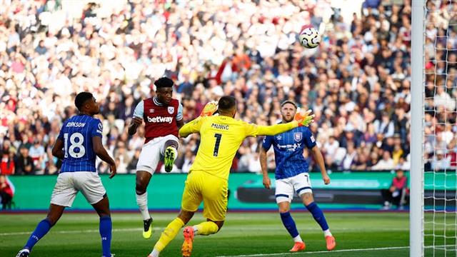ووقع محمد قدوس على ثاني أهداف وست هام يونايتد من رأسية في شباك إيبسويتش بحلول الدقيقة 43.