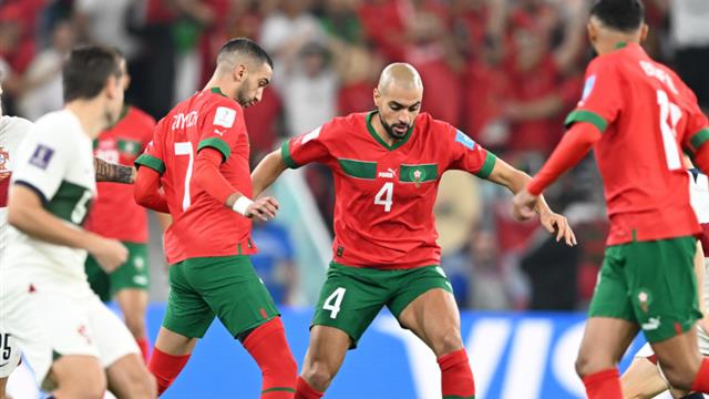 خط الدفاع: أشرف حكيمي، نايف أكرد، يوسف بلعمري وجمال حركاس.