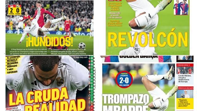 صحيفة موندو ديبورتيفو الكتالونية: "مبابي يقود ريال مدريد إلى شفا الهاوية بعد ضربة قوية أمام ليفربول في ملعب أنفيلد".