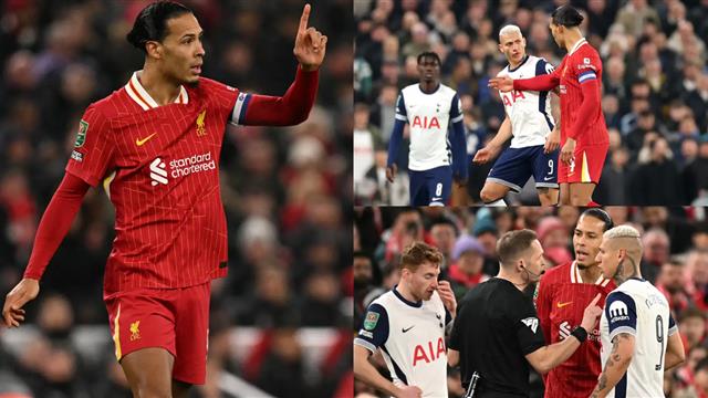 أفلت قائد ليفربول فيرجيل فان دايك، من طرد مبكر في مباراة فريقه أمام توتنهام بإياب نصف نهائي كأس كاراباو.
