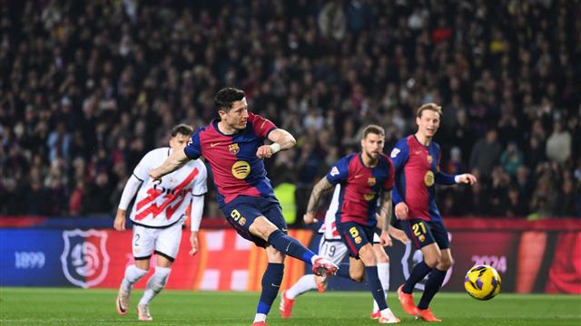 وتمكن روبرت ليفاندوفسكي من تسجيل هدف برشلونة الأول ضد رايو فاليكانو، في الجولة الرابعة والعشرين من ضربة جزاء.