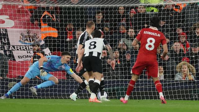 هدف ليفربول سجله سوبوسلاي في الدقيقة 11 بعد تمريرة ممتازة من لويس دياز من الجهة اليمنى لمرمى نيوكاسل، ليترجمها المجري بالقدم اليسرى بطريقة رائعة في شباك الضيوف.