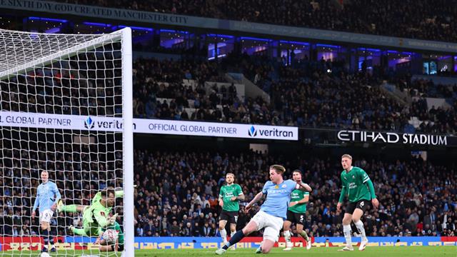 وجاء الهدف بعد تسديدة من هالاند ولكن اصطدمت بالحارس قبل أن ترتد من جديد لتصل إلى النرويجي الذي مرر الكرة ناحية كيفين دي بروين، الذي سددها من لمسة واحدة في الشباك.