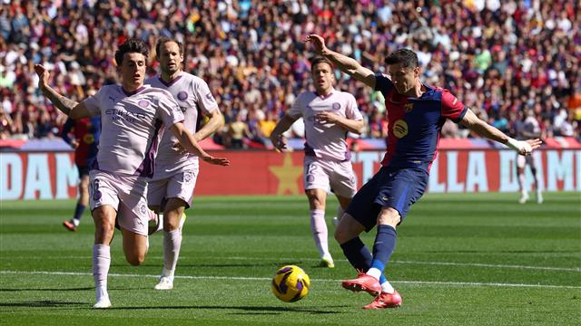 ونجح المهاجم البولندي روبرت ليفاندوفسكي في تسجيل هدفي برشلونة الثاني والثالث في شباك جيرونا بحلول الدقيقة 61 و77 من عمر الشوط الثاني.