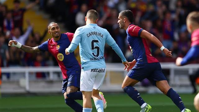 وسجل البرازيلي رافينها الهدف الثالث لفريقه برشلونة ليمنحهم التعادل في الدقيقة 68 من اللقاء، وأحرز الهدف بعد تمريرة من لامين يامال.