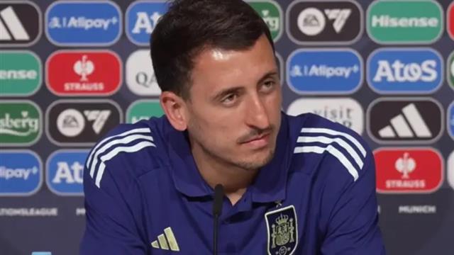 تحدث ميكيل أويارزابال، لاعب منتخب إسبانيا، في المؤتمر الصحفي قبل نهائي دوري الأمم الأوروبية غدًا.
