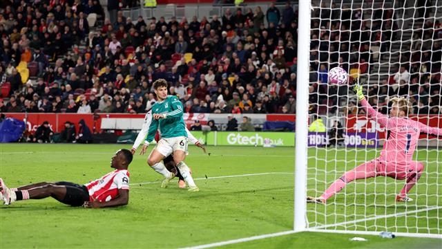 ونجح ليفربول في تسجيل هدفه الأول في شباك برينتفورد، قبل نهاية الشوط الأول، وتحديدًا في الدقيقة الثالثة من الوقت المحتسب بدلَا من الضائع.