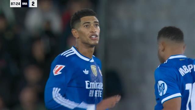 وفي الدقيقة 86 عاد جود بيلينجهام ليتعادل للفريق الضيف بعد تمريرة من كيليان مبابي وتم الاحتكام لتقنية الفار التي جاء قرارها في صالح ريال مدريد، رغم اعتراض إلتشي على عدم صحته.