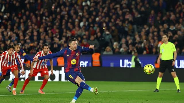 ضربة جزاء ليفاندوفسكي في مباراة برشلونة وأتلتيكو مدريد