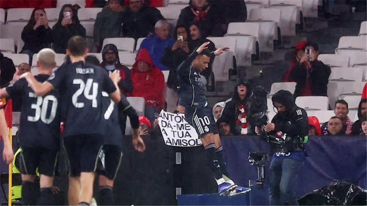 ونجح مبابي في تسجيل الهدف الأول لصالح ريال مدريد أمام بنفيكا، بعدما استلم عرضية رائعة من راؤول أسينسيو سددها الفرنسي برأسه في المرمى.