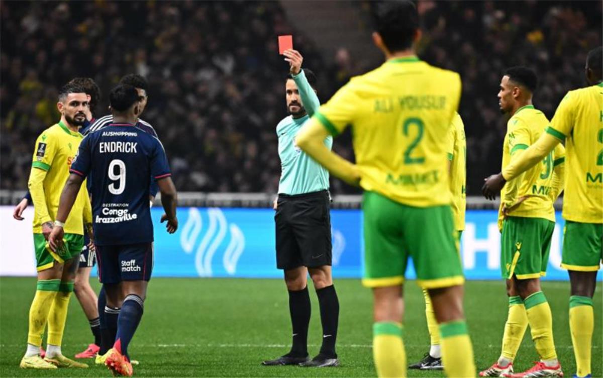 طرد إندريك في مباراة نانت وليون بالدوري الفرنسي